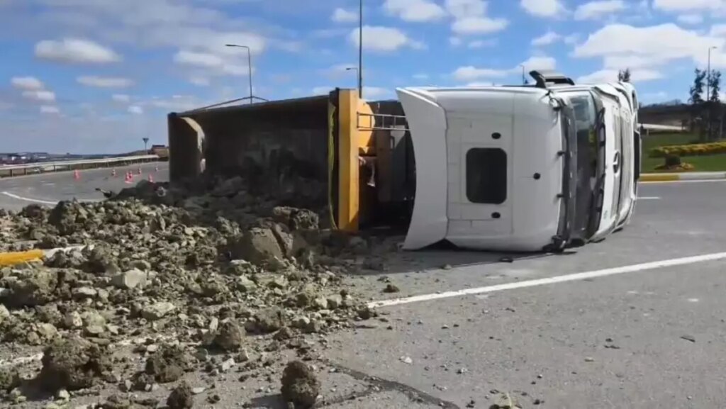 ARNAVUTKÖY’de hafriyat yüklü kamyonun devrilmesi sonucu meydana gelen kazada sürücü yara almadan kurtuldu.